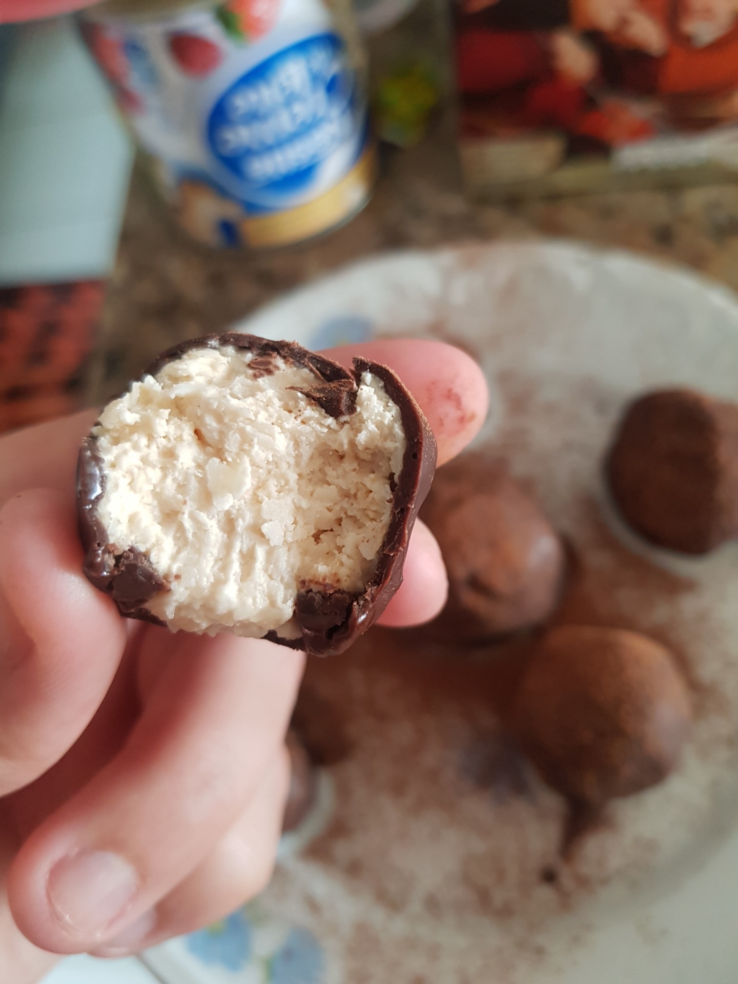 - Derreta o chocolate, e envolva as bolinhas de prestigio até que esteja todas cobertas por chocolate.