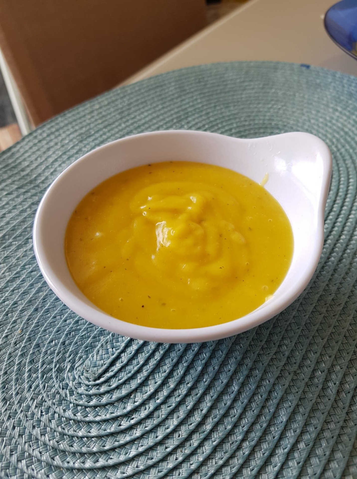 - Se você tiver um mixer, bata o caldo até que fique bem lisinho. Do contrario, bata a mistura no liquidificador até que fique bem lisinho.